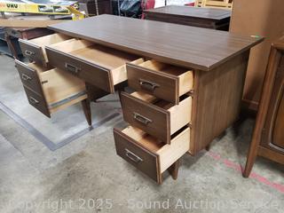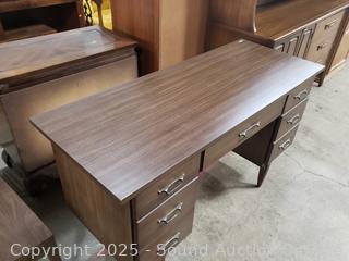 Lot #0011: Vintage 6-Drawer Simulated Wood Finish Desk