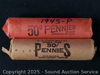 Lot #0091: (1) Roll 1945-P, (1) Roll 1945-D Wheat Pennies