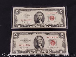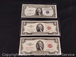 Lot #0070: 1935E $1 Silver Cert., 1953 & 1963 Red Seal $2 Notes