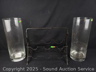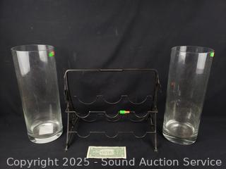 Lot #0109: 2 Glass Hurricanes & 6-Bottle Wine Rack