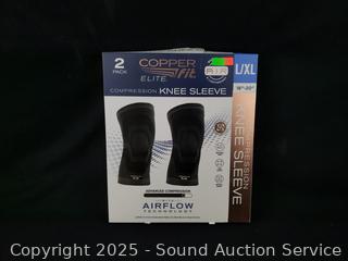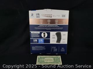 Lot #0319: 2pk CopperFit Elite Compression Knee Sleeves S:L/XL,16-20"
