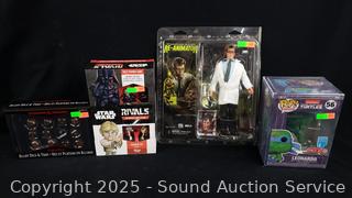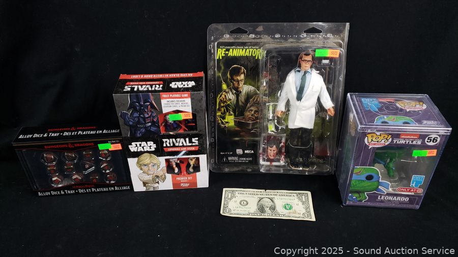 2021 Pop! Nickelodeon TMNT Leonardo #56, Funko Games Star Wars Rivals Expandable Game System, H.P. Lovecraft's Re-Animator, 2021 12pc Dungeons & Dragons Alloy Dice & Tray set. All appear to be factory sealed.