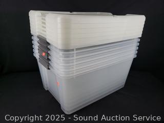Lot #0035: 6 Clear Plastic Totes w/Lids