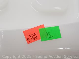 2 handle clips are broken. Approx. 10" H x 15" x 21".