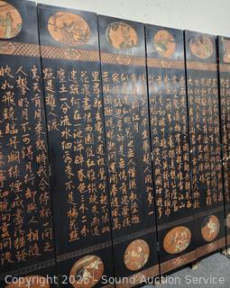 Lot #0061: 8 Panels Tall Asian Black Lacquered Privacy Bifold Panels
