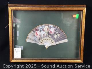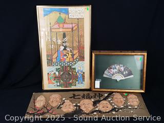 Lot #0288: Asian Framed Fan, 3D Relief Mask, Middle Eastern Artwork
