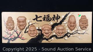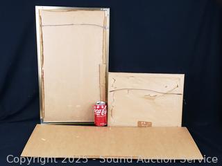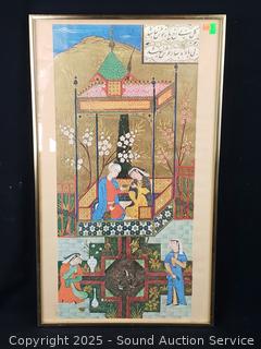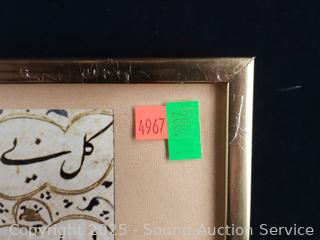 Refer to photos for lot contents, more details. 15.5" x 12" fan shadowbox, 30.5" x 10.75" 3D Relief artwork, 14.25" x 24" middle eastern artwork.