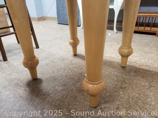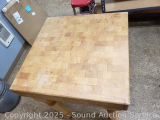 34.5" H x 24" x 24". Some scuffs, war from use, overall good condition.
