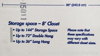 Unassembled in original packaging, appears sealed. Fits 6ft to 8ft closets.