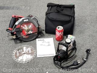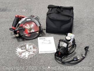 Lot #0289: Skil 7-1/4" Circular Saw w/Case & Husky 120V Tire Inflator