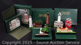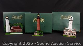 All in original packaging. Marblehead Light, Mackinac Point Light, East Brother, Tawas Point Light, St. Simons Island Lighting, Currituck Beach Lighthouse, Jeffrey's Hook. Refer to photos for more details.