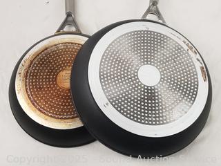2.5qt, saucepans, 6qt boiling pot, 8|10", (2) 12" skillets, 12" multipurpose pan. In great condition.
