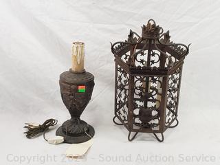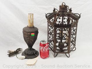Lot #0028: Antique 19th Century Italian Electrified Lamp & Hanging Lamp - Parts/Rapair