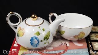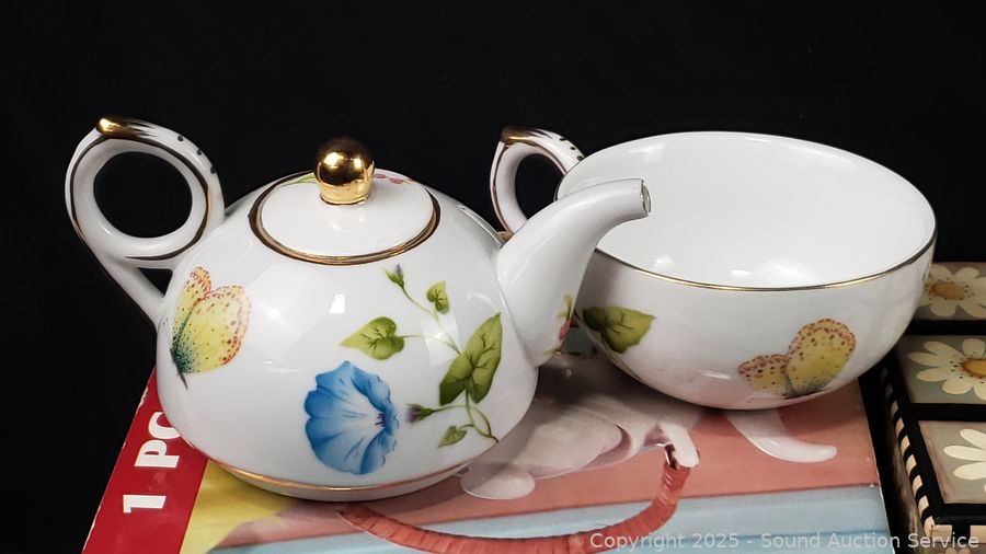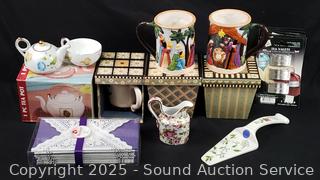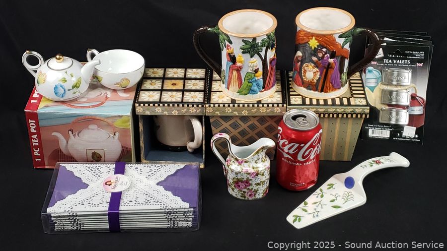 Teapots, mugs, towels, tea valets, etc. Refer to photos for lot contents, more details.