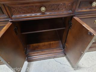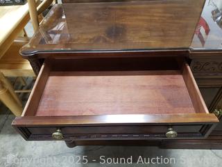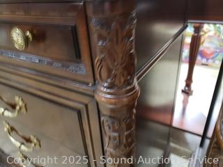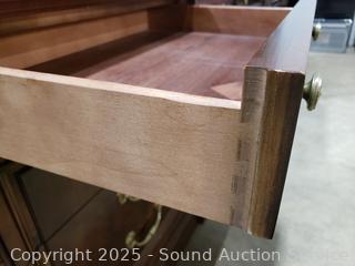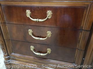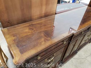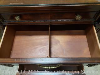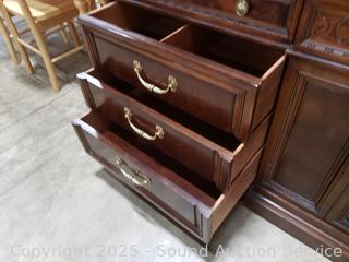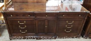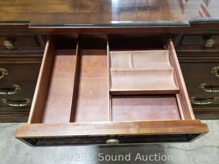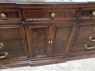 Lot #0017W: Henredon Villa Borghese Mahogany 9-Drawer Dresser w/Cabinet & Glass Top