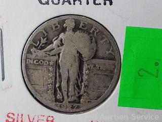 Lot #0002: 1927 90% Silver Standing Liberty Quarter