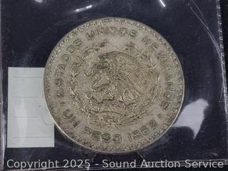 One is a 1962 Old Mexican Silver Dollar. Refer to photos for lot contents, more details. ATTN: We are not coin or currency experts or graders, please use your own judgement when bidding.