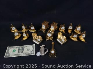 Lot #0128: Assorted Golden Quartz Clock Figures