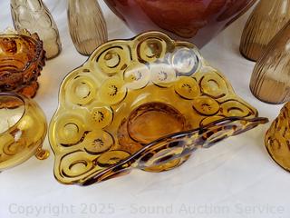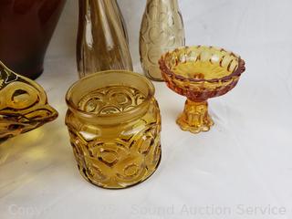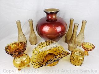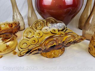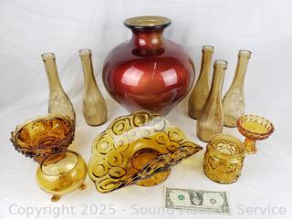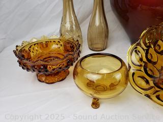 Lot #0166: Assorted Marigold Glassware Decor & Vase