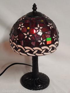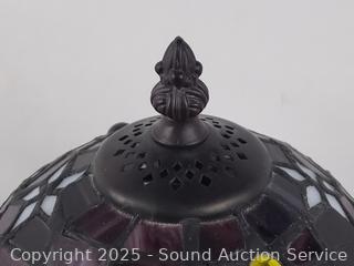 Lot #0201: Bronze Finish Stained Glass Shade Lamp