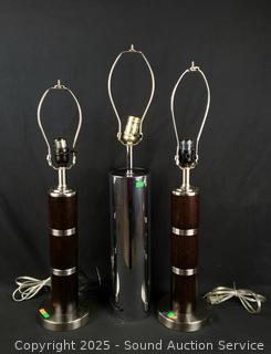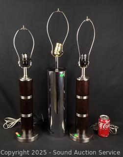 Lot #0031: 2 Brushed Nickel & Black & 1 Chrome Finish Table Lamps