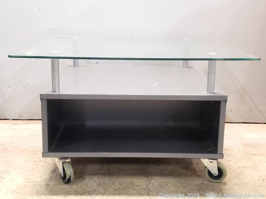 Lot #0191: Glass Top Rolling Table