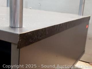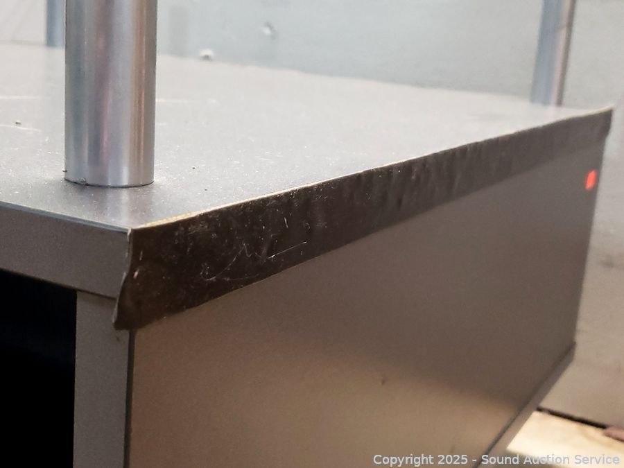 Edges are peeling, damaged casters. 17.5" H x 29.5" x 29.5".