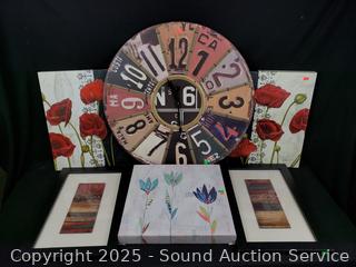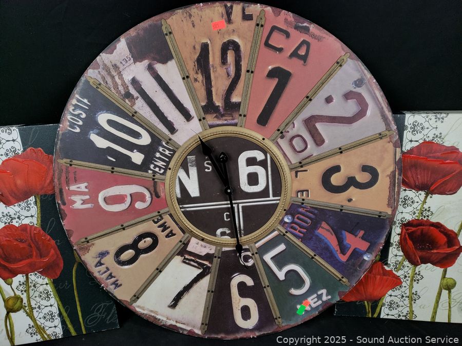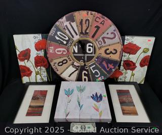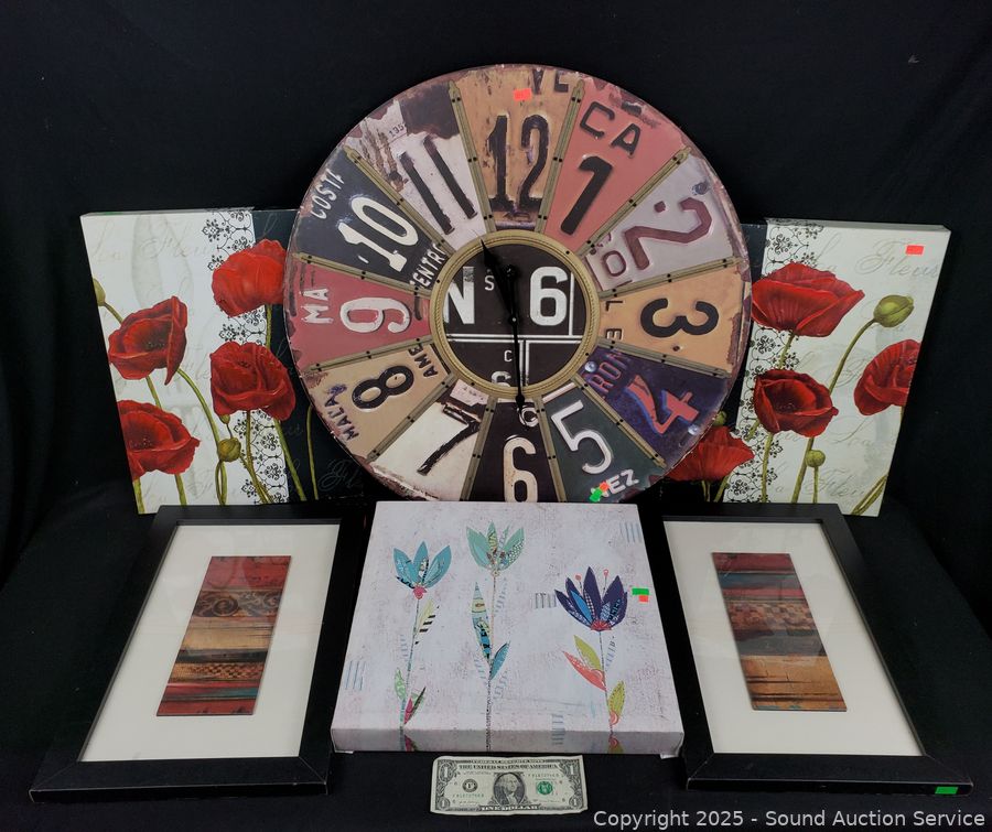Lot #0135: License Plate Clock & 5pc Giclee & Other Print Artwork