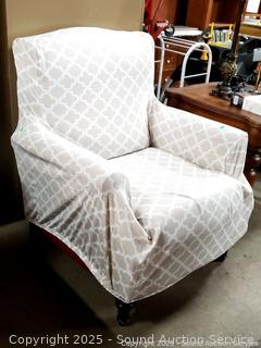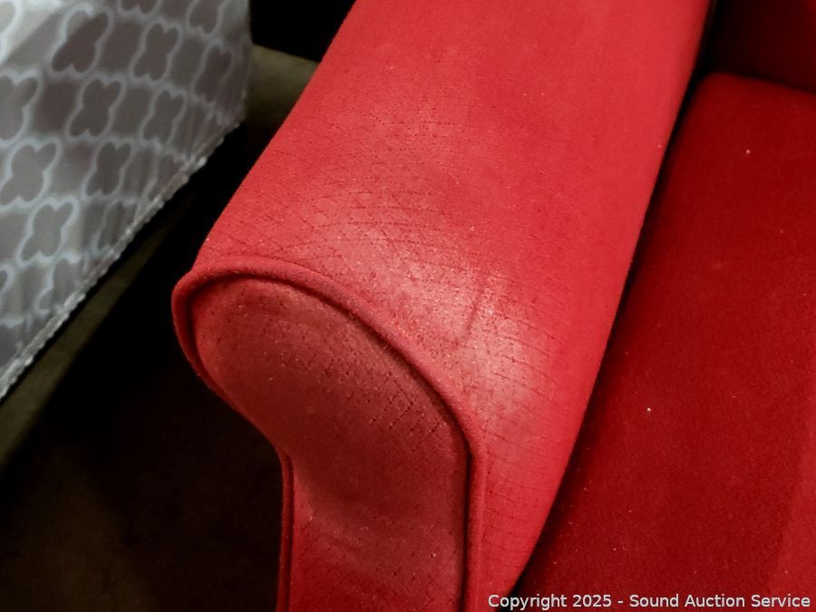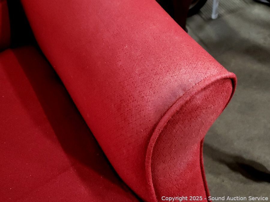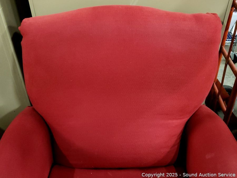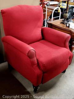Lot #0190: Red Upholstered Pushback Recliner w/Cover