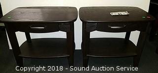 Lot #0099: (2) Single Drawer Dark Stained Oak Side Table