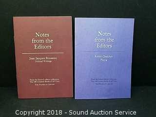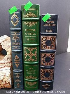 3 of the Greatest Books Ever Written published by the Franklin Library. Titles include: "Anton Chekhov - Plays", "Eugene O'Neill - Plays" & "Jean Jacques Rousseau - Political Writings". Leather Bound, Uncracked, Gold Gilded, Silk Page Markers in Unread Condition. All but "Eugene O'Neill - Plays" come with "Notes from the Editor's" Pamphlets.