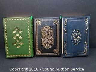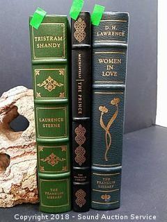 3 of the Greatest Books Ever Written published by the Franklin Library. Titles include: "Tristram Shandy", "Machiavelli - The Prince" & "D.R. Lawrence - Women in Love". Leather Bound, Uncracked, Gold Gilded, Silk Page Markers in Unread Condition. All come with "Notes from the Editor's" Pamphlets.