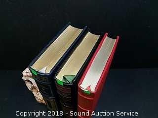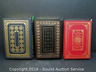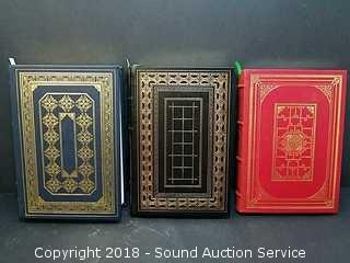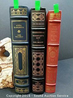 3 of the Greatest Books Ever Written published by the Franklin Library. Titles include: "Anna Karenina - Leo Tolstoy", "Humboldt's Gift - Saul Bellow" & "The Good Earth - Pearl Buck". Leather Bound, Uncracked, Gold Gilded, Silk Page Markers in Unread Condition.