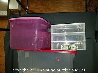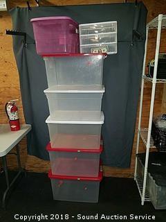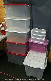 Lot #0117: 8 Plastic Storage Totes w/Lids & Organizer