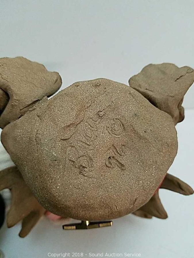 Has a chipped ear. Approx. 6" tall, 6" diameter.