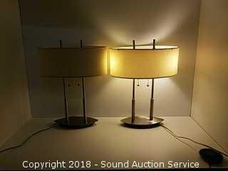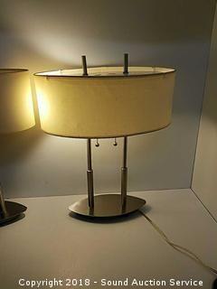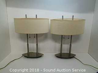 Lot #0102: Pair of 18" Modern Brushed Nickel Table Lamps