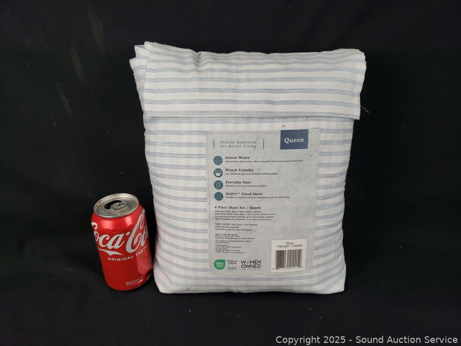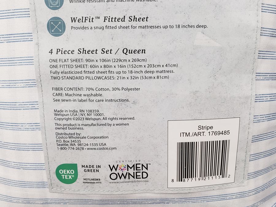 Lot #0251: 4pc Welhome Queen Cotton Stripe Sheet Set