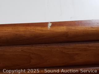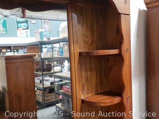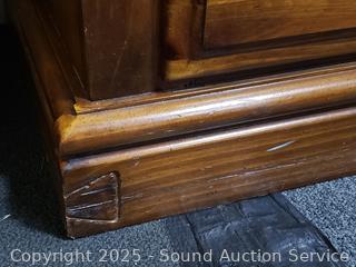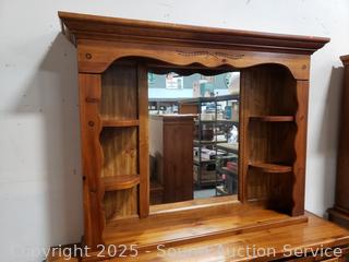 32.5" H x 70" W x 18.5" D with 47" H x 57" W x 9" D. Some minor wear to finish. Overall good condition.