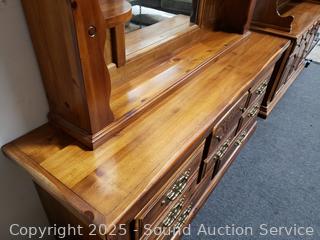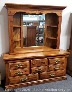 Lot #0010: 8-Drawer Medium Finish Wood Vanity Dresser