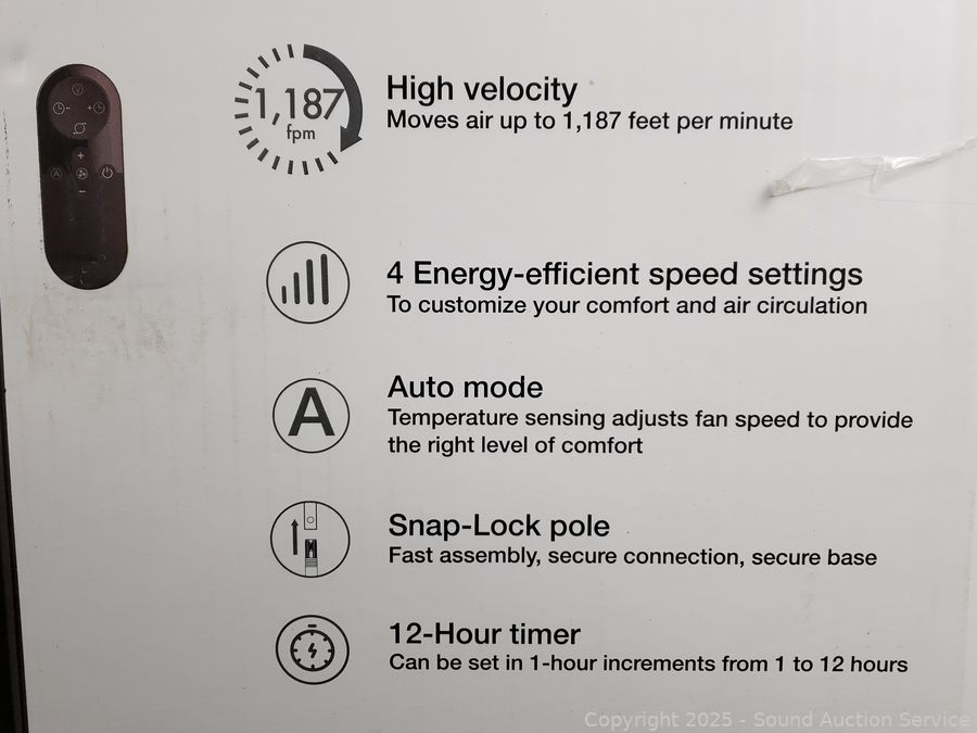 Has power. Oscillation mechanism is broken. Other features appear to be functioning as intended.