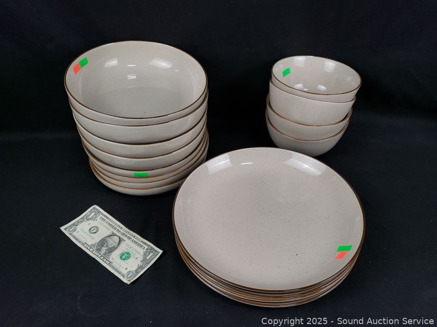 Lot #0091: 16pc Over & Back Stoneware Dish Set
