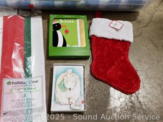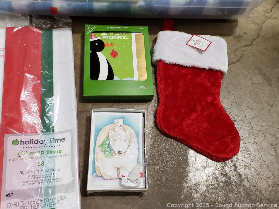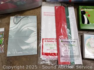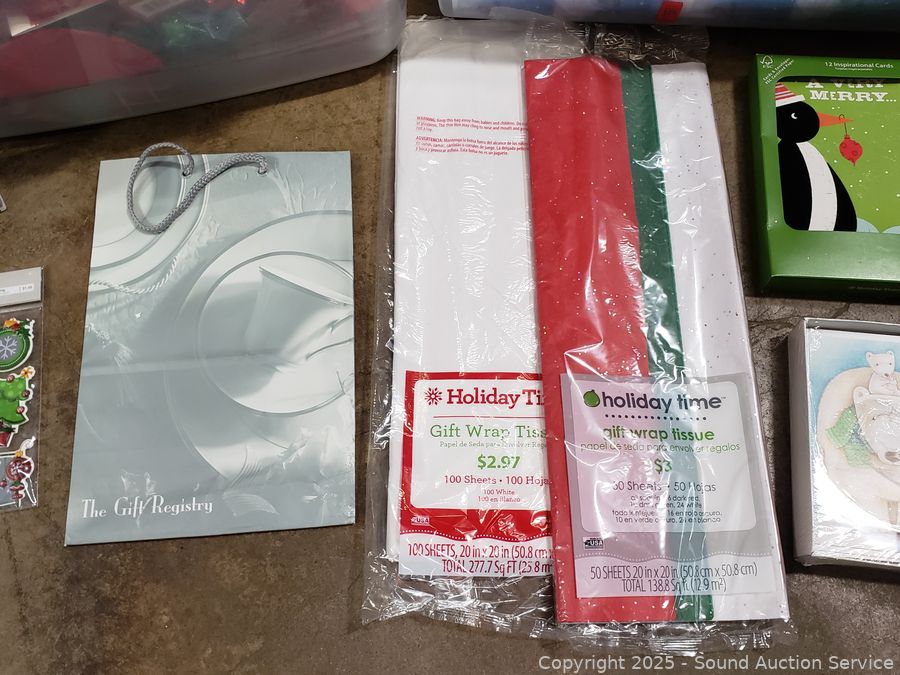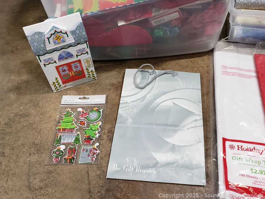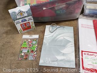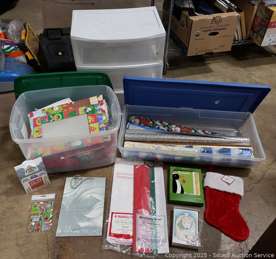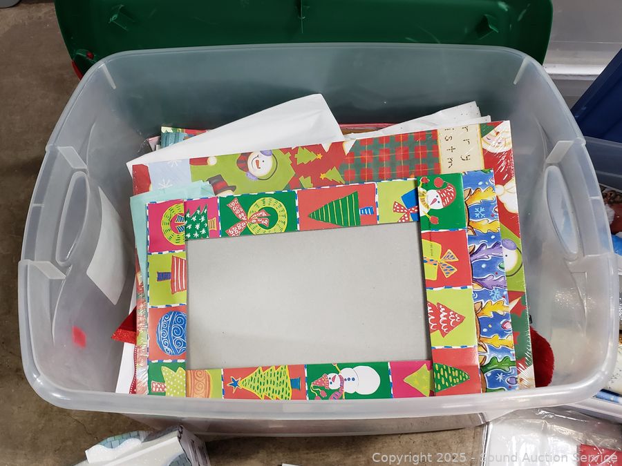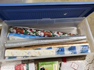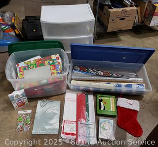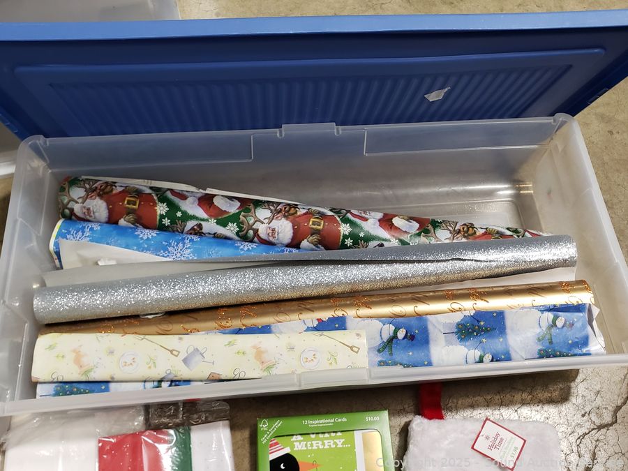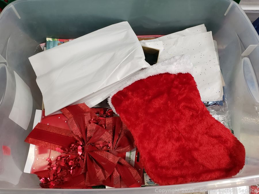 Lot #0036: 2 Totes & Organizer w/Christmas Wrapping Paper, Gift Bags, Tissue Paper