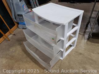 6" H x 16" x 33" tote, 13" H x 23" x 17" tote, 23" H x 21" W x 15" D organizer (top is a little loose).