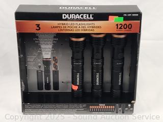 Lot #0256: 3 Duracell Hybrid 1200LM LED Flashlight