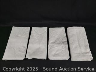 1 flat, 1 fitted, 4 pillowcases. Some minor dirty spots.