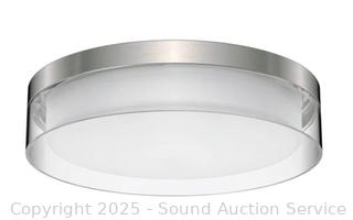 Lot #0255: Energetic 14” Brushed Nickel Double Glass LED Flush Mount Light Fixture