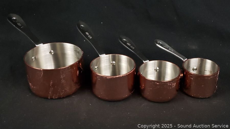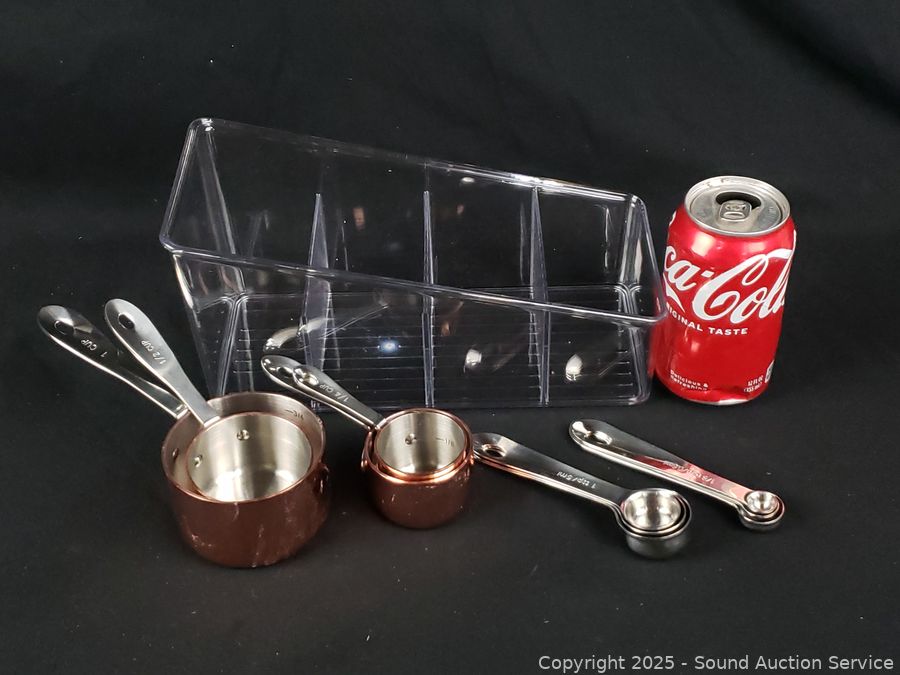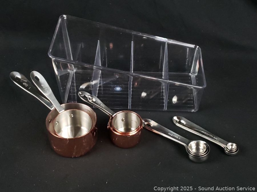 Lot #0291: 10pc Miu Copper Plated & Stainless Measuring Cup & Acrylic Organizer