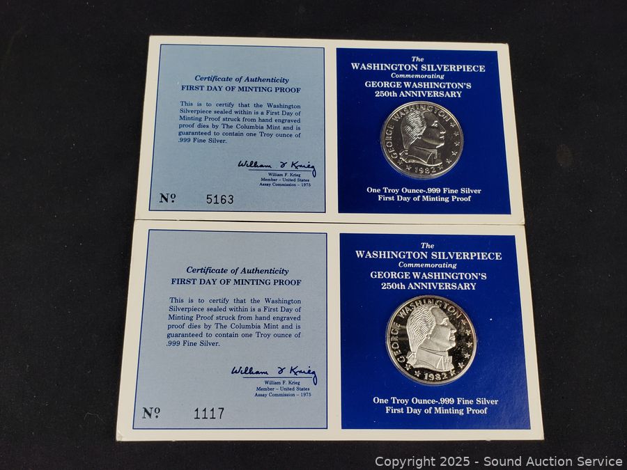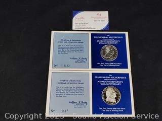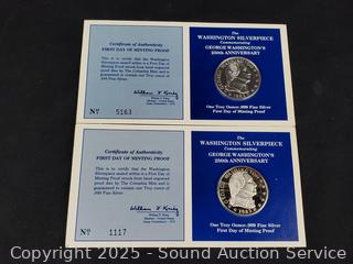 Lot #0004: (2) 1oz .999 Fine Silver FDI Washington Silverpiece Commemorative Medallions w/COA's