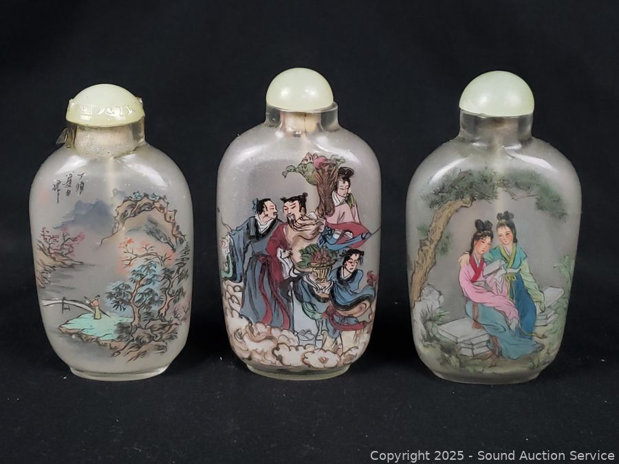 Lot #0097: Assorted Asian Reverse Painted Glass Snuff Bottles