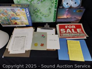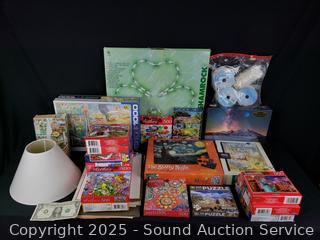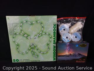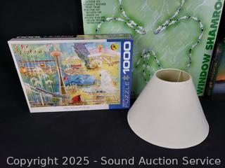 Lot #0059: Assorted Puzzles, Lighted Shamrock, Ribbon, Shade